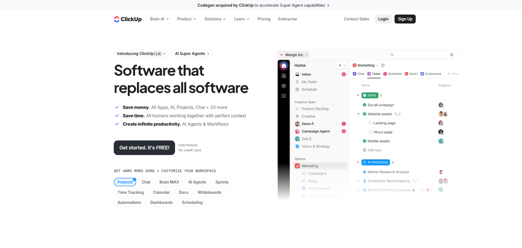ClickUp is a flexible project management platform that allows IT teams to customize workflows, views, and automation. It supports multiple project styles, making it suitable for teams that want control over how work is structured and tracked.